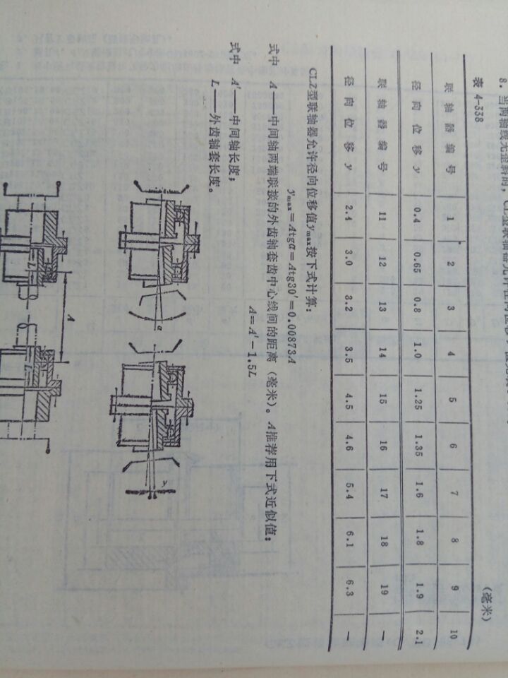 4.外齒軸套與其它軸伸配合時,中間軸的重量不得大于根據(jù)公稱扭矩計算而得的在齒節(jié)圓嚙合處的圓周力的2%。